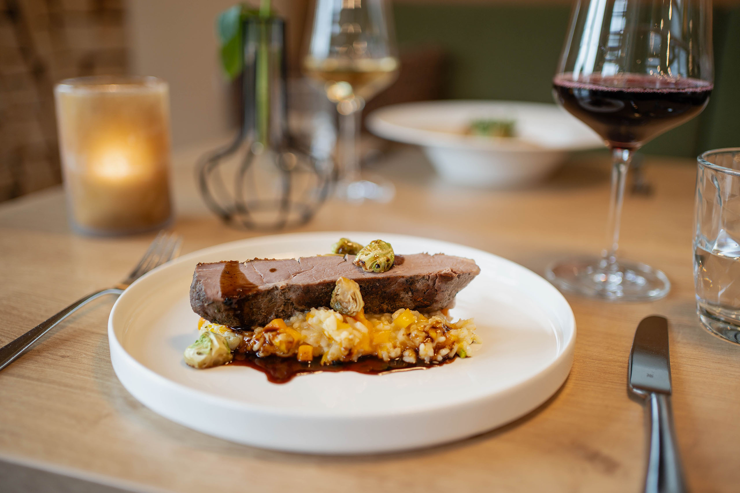 Wenn es um Wild geht, gerät unser Küchenteam ins Schwärmen. Ob kräftiger Hirsch, zartes Reh oder würziges Wildschwein – jedes Jahr zaubern sie aus diesen edlen Zutaten wahre Gaumenfreuden, mal klassisch, mal neu interpretiert. Begleitet von herbstlichen Aromen von frischen Pilzen, Maroni oder Rotkraut entsteht ein kulinarisches Erlebnis, das die Seele wärmt und den Herbst von seiner genussvollsten Seite präsentiert: