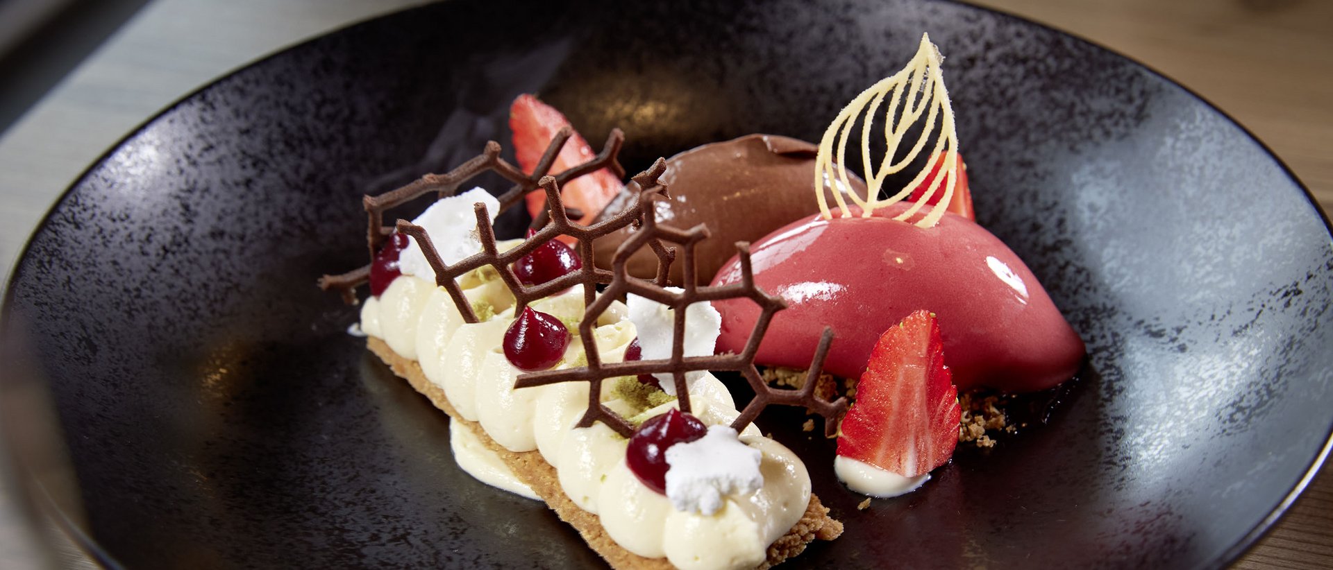 - Genießen Sie als Vorspeise wahlweise einen Wildkräutersalat oder eine feine Kürbissuppe. Zum Abschluss erwartet Sie ein Ahornparfait oder als Alternative ein dunkles Schokoladen-Mandeleis auf knusprigem Sandgebäck.